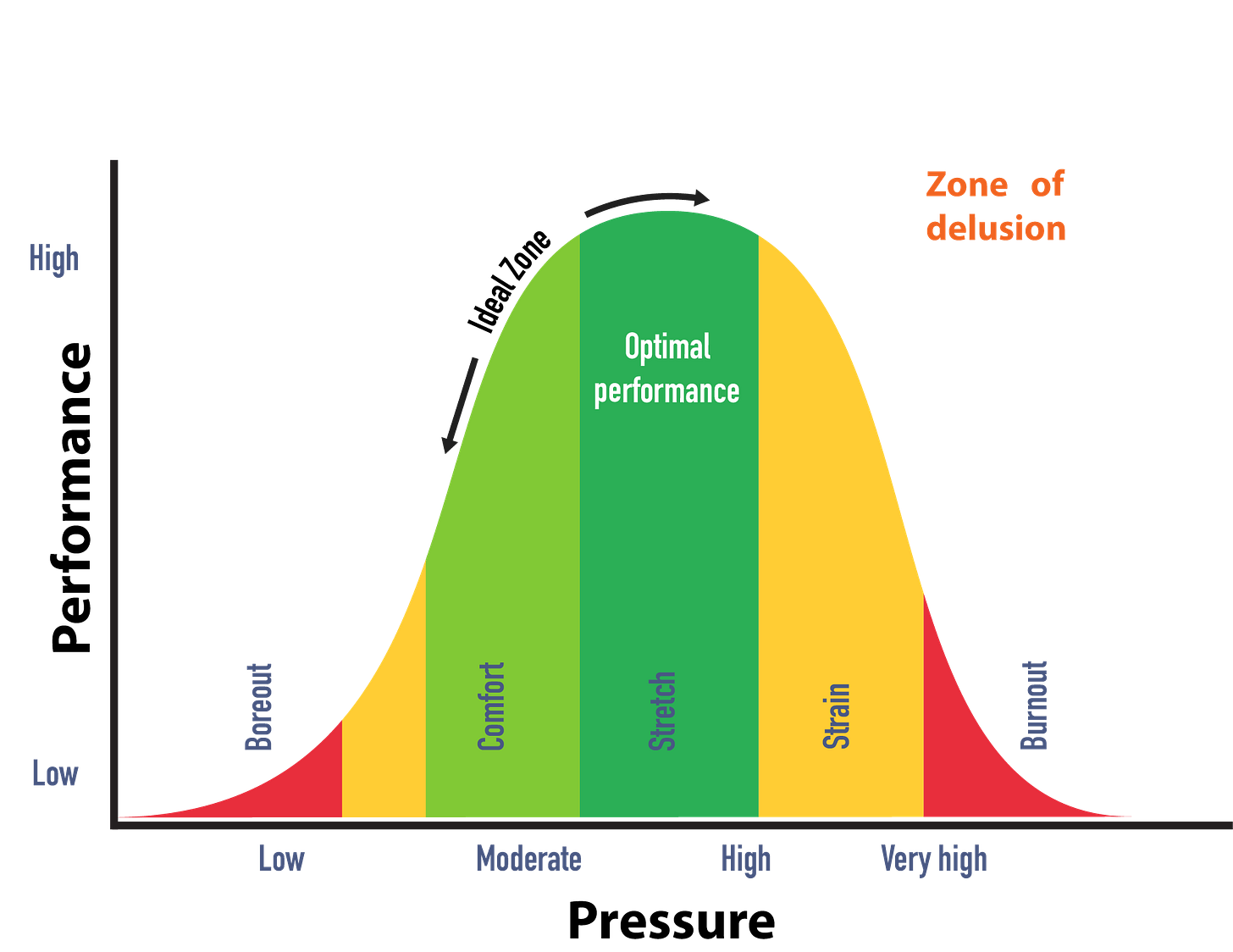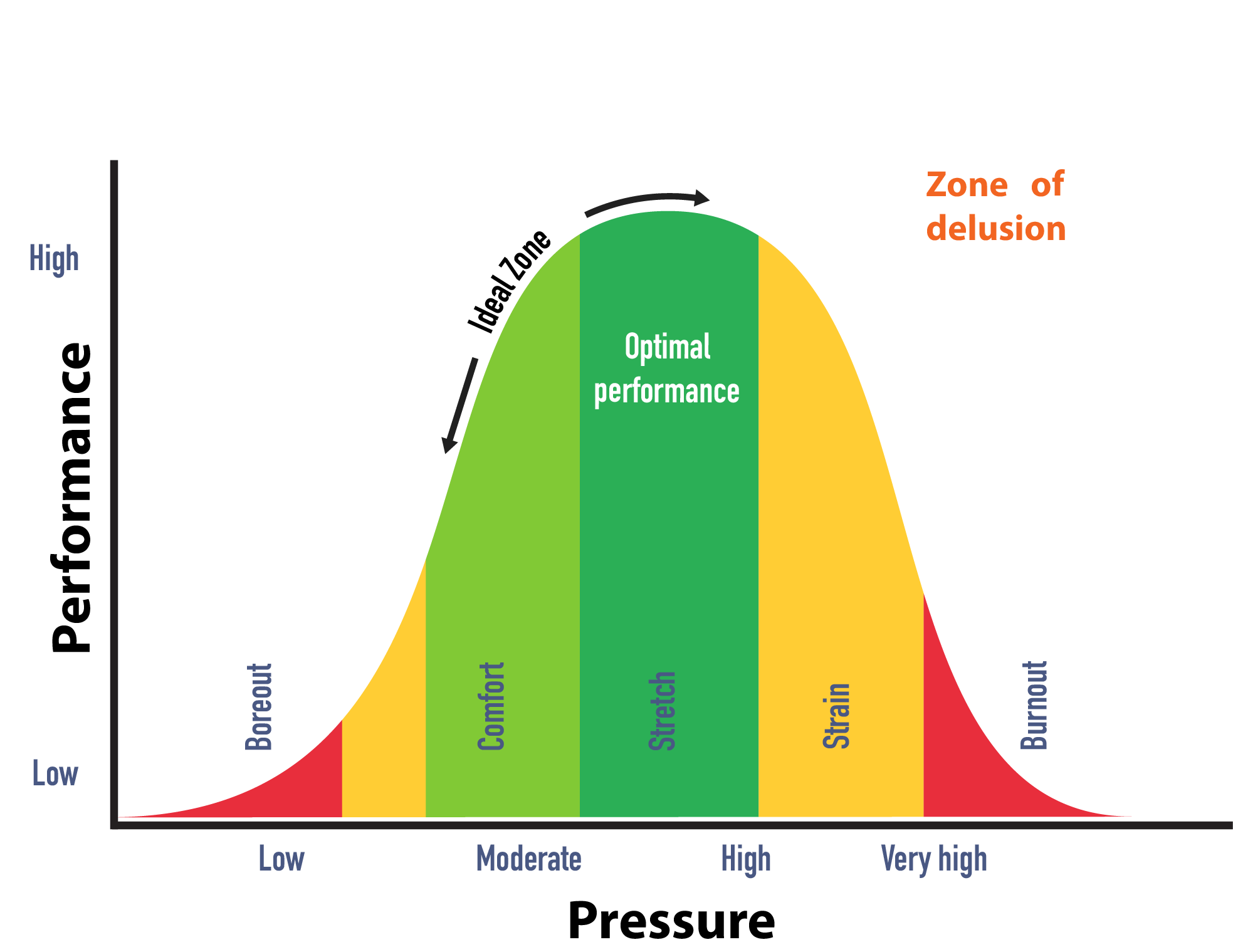 Could it be that instead of feeling overwhelmed by the work, we are actually feeling extreme anxiety about what would happen if we didn’t successfully accomplish the work? From a work quality and quantity perspective, it makes no sense for us to push to burnout. Performance drops when pressure gets too high.