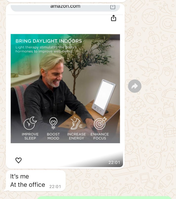 Hey everyone. Today’s essay is by request. Winter’s earlier, darker hours came up in a recent conversation with a friend and we talked about how it’s affecting us. Usually I don’t think about it much—I can’t control the seasons and I secretly love being in bed by 8. But it made me wonder whether the darkness is why I’m avoiding news in the evenings, skipping afterwork meet ups and losing motivation for morning runs. Some people describe it as a natural time for hibernation, others nicknamed it hell on earth. Maybe rolling with the punches isn’t the best strategy here? Let’s unpack a collective feeling my friend put so eloquently: “I just really need more light”.