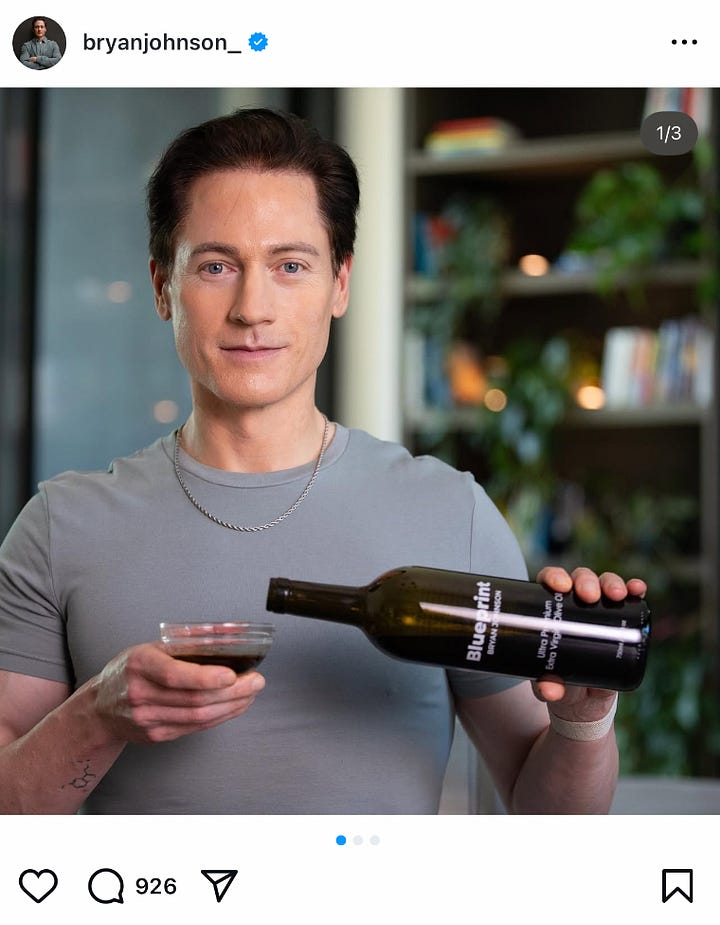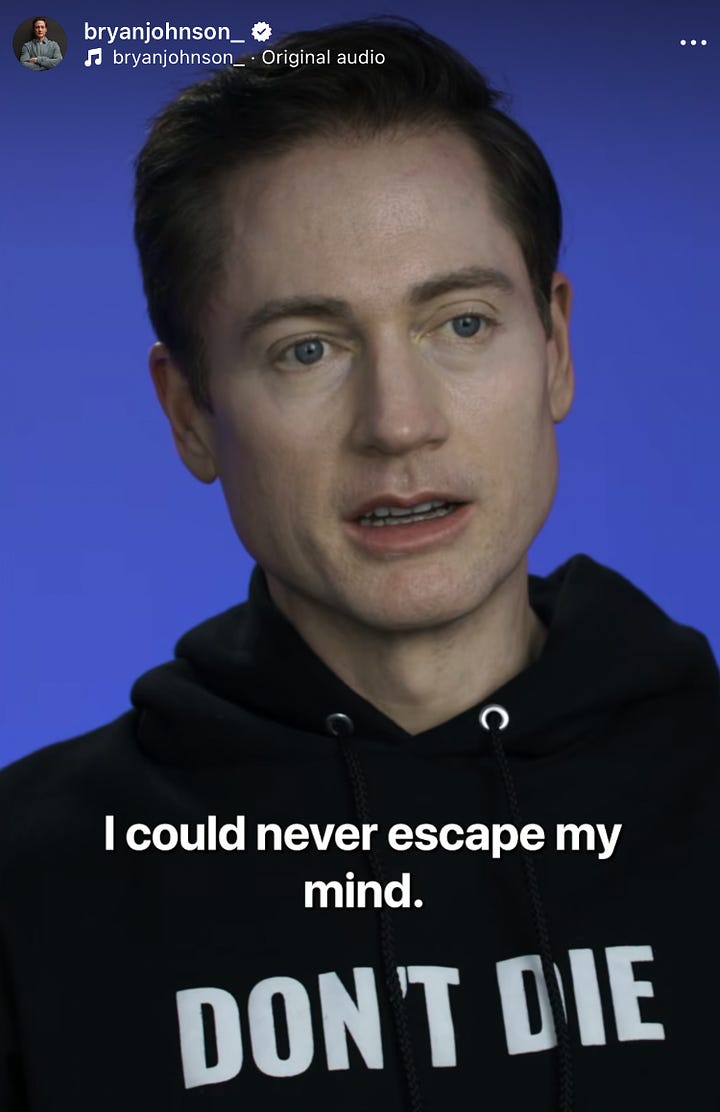 I can't put my finger on it - he just looks slightly younger in 2025 (left) than he did in 2023 (right). Did he find a great plastic surgeon, or is his regimen actually starting to work? Time will tell. I’ve also been thinking about his documentary that recently launched on Netflix, in which he quite literally tells us that his obsession with his body is a way to distract himself from his mental health issues and his loneliness. His emotional struggle did not go unnoticed, with Reddit posts like this one, commenting that “immortality means nothing without love and connection.” So true. Ironically, loneliness increases your risk of premature death by 26%. Love > supplements.