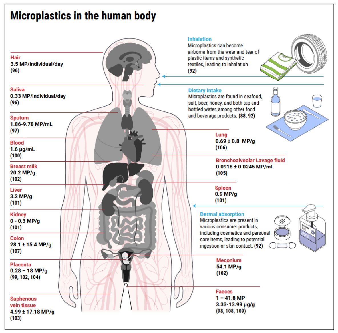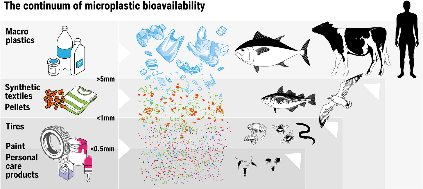 There is currently billions of tonnes of macroplastics in landfills, waiting to become part of the food chain. Maybe I understand The Economist now. But after 20 years of research in microplastics with extremely clear outcomes, I think the scientific community could/should exert more pressure on the government to introduce bans, classifications and fines on production. But until then, it might be useful to understand how human beings absorb microplastics. Instead of thinking of all the products in the world we should be avoiding, maybe we can focus on the specific things we’re consuming and see if there’s an alternative next time we stock up. What do you eat, what do you breathe and what do you put on your body? Think about it next time you buy something.