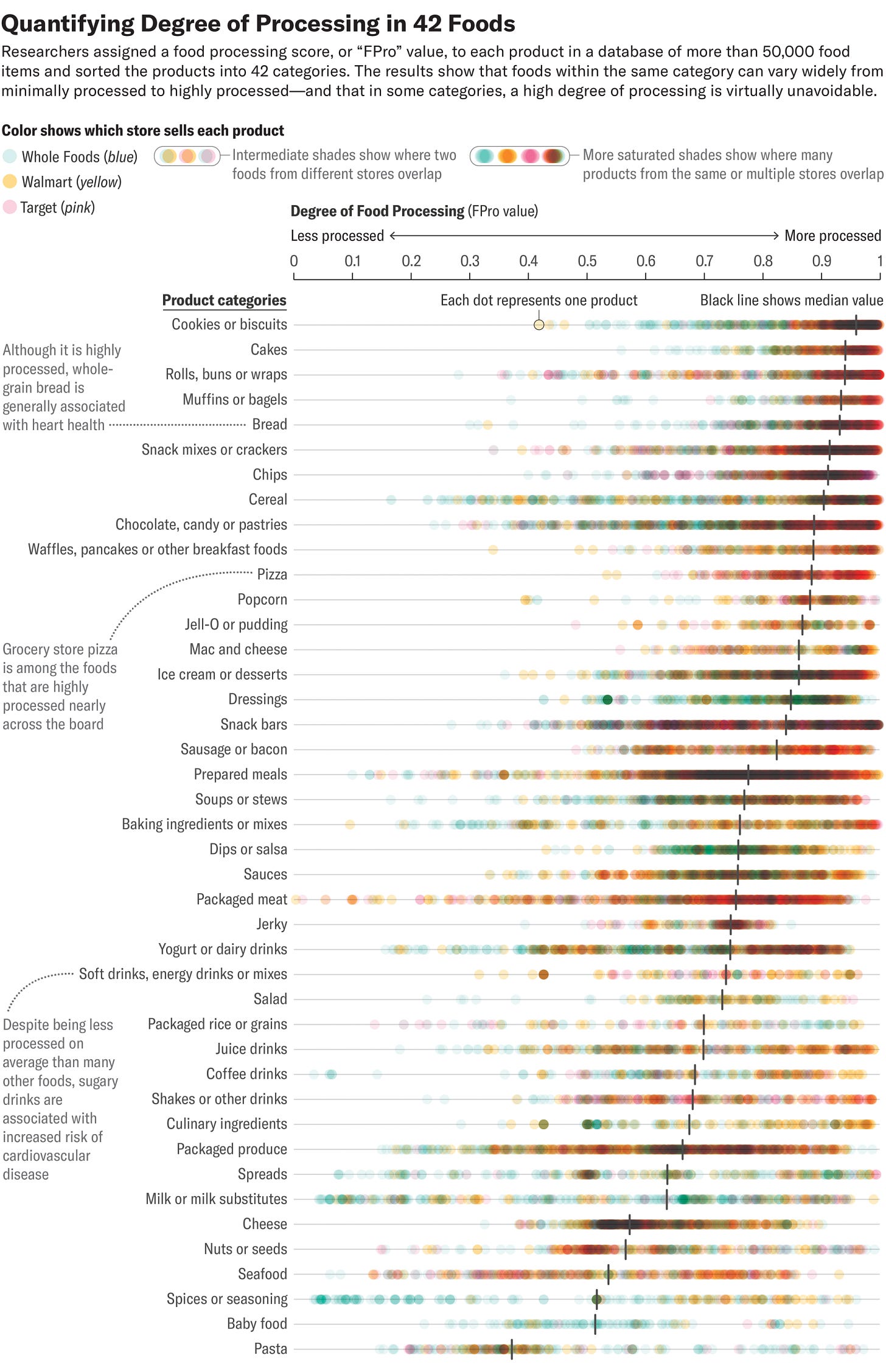 The best way to read this chart is to consider the range of processing of food products. For example, you can buy very processed cereal or less processed cereal. But, snack bars on the contrary, have almost no range. They seem to always be extremely processed. This means that no matter how healthily a snack bar is marketed, it is very unlikely to actually be healthy.Study finds that new brain samples contain 50% more microplastics than they did in 2016. While the Economist asks whether we should worry, they conclude their article stating that microplastics are impossible to avoid and that they have more questions than answers. Ok? Aside from not heating up food in plastic containers, or drinking hot beverages from plastic cups, I’m usually too exhausted from working to live a seriously plastic-free life.