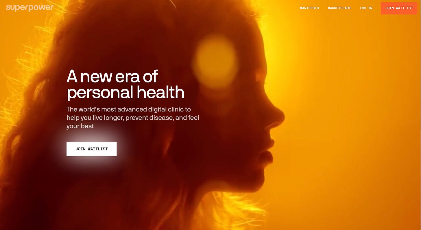 Superpower, a longevity marketplace, is launching a biomarker tracking platform. They are coining themselves ‘the world’s most advanced digital health clinic’. I love the branding, the positioning and the promise. I just wonder what more they will tell me than ‘exercise!’ and ‘eat broccoli!’ and ‘buy this supplement with 15% off!’. They will be competing with Neko, founded by Spotify founder and Retro Biosciences, backed by Sam Altman from OpenAI. Curious to see how this competitive landscape will unfold. Longevity + AI is going to be one of the fastest growing trends in tech in 2027-2028, mark my words.